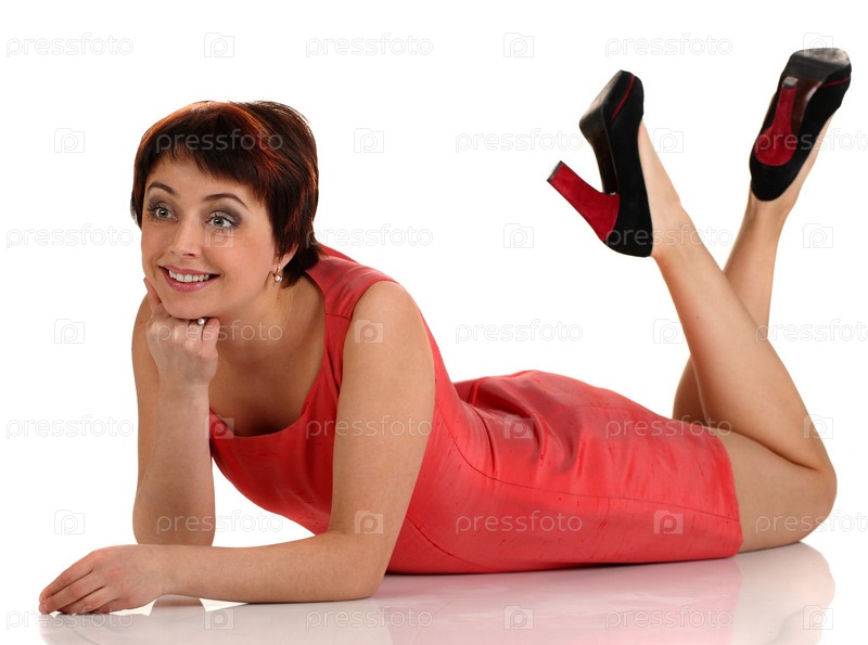 Красивая молодая женщина лежит на полу