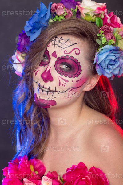 Девушка в гриме и костюме на Хэллоуин