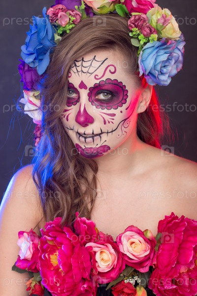 Девушка в гриме и костюме на Хэллоуин