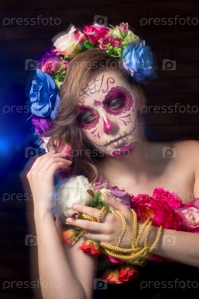 Девушка в гриме и костюме на Хэллоуин
