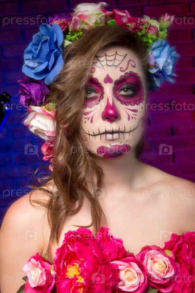 Девушка в гриме и костюме на Хэллоуин
