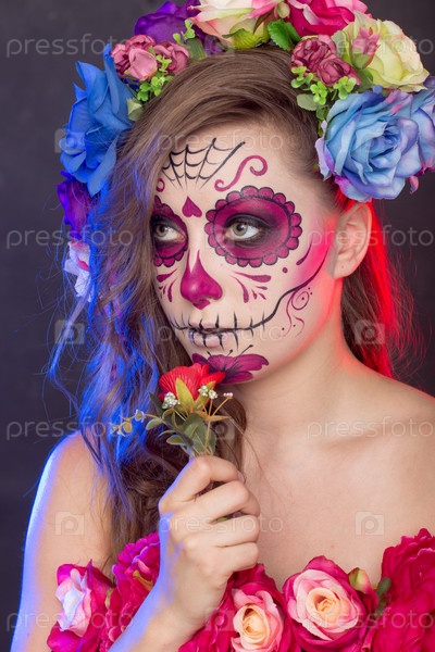 Девушка в гриме и костюме на Хэллоуин