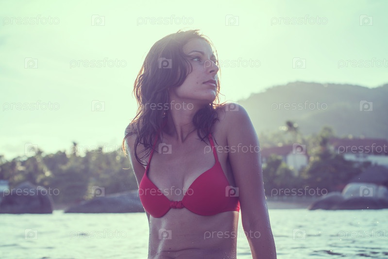 Красивая девушка в красном купальнике