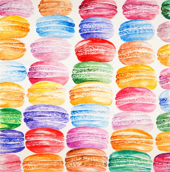 Красивые карты с акварелью окрашены красочные французский десерт миндальное печенье