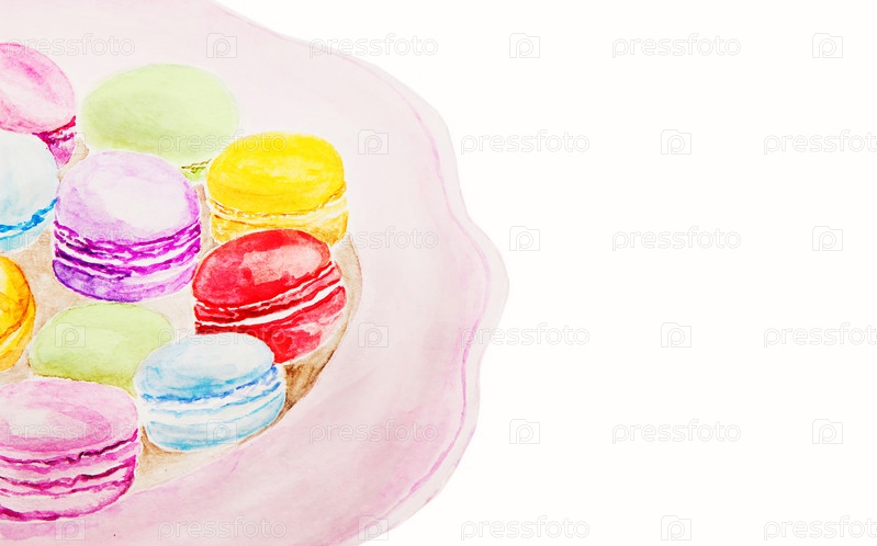 Десерт миндальное печенье акварельный рисунок на белом фоне