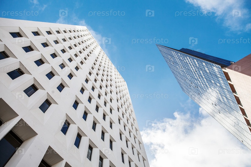 Фрагмент небоскреб стекла, объединилась с голубое небо