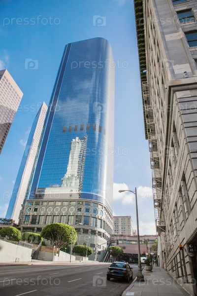 Небоскребы против голубого неба в центре Лоа Анджелес, Калифорния, США