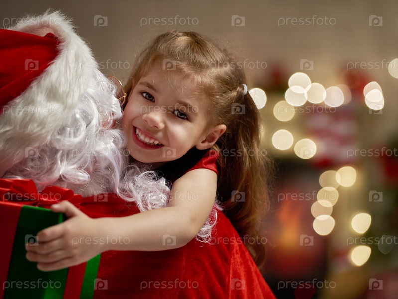 Санта-Клаус и счастливая девочка