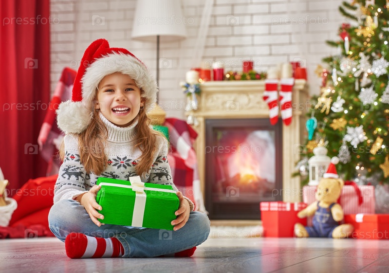 Маленькая девочка с Рождественским подарком