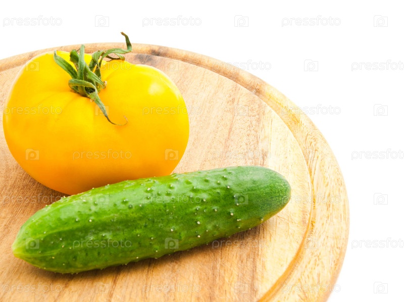 Желтый помидор и огурец