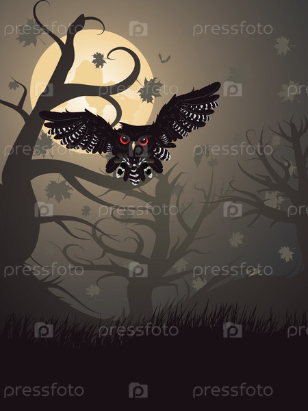 Сова в ночном лесу