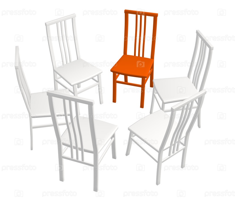 Красный стул в кругу белых кресел