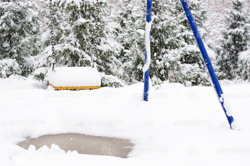 Детские качели в снегу