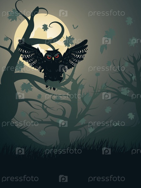 Сова в ночном лесу