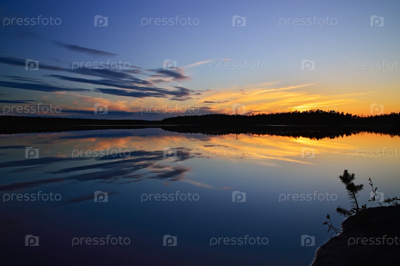Белые ночи на озере Поньгома. Северная Карелия, Россия