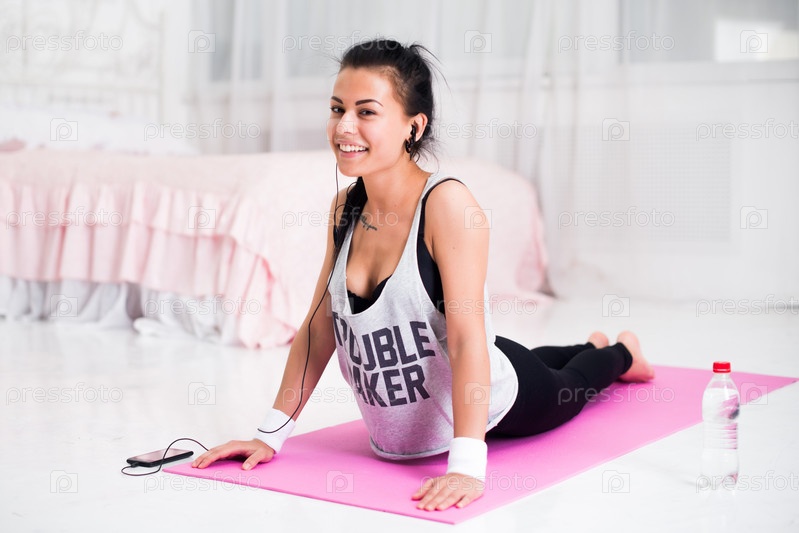 Девушка делает упражнение на растяжку поясничных и брюшных мышц