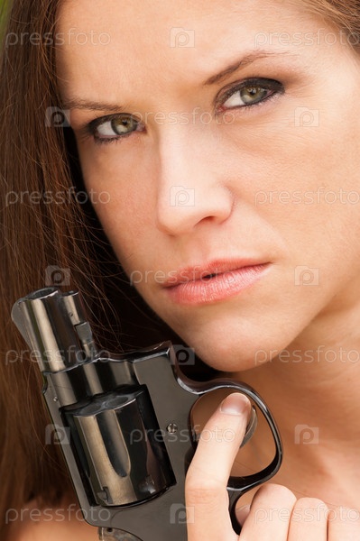 Симпатичная женщина с револьвером