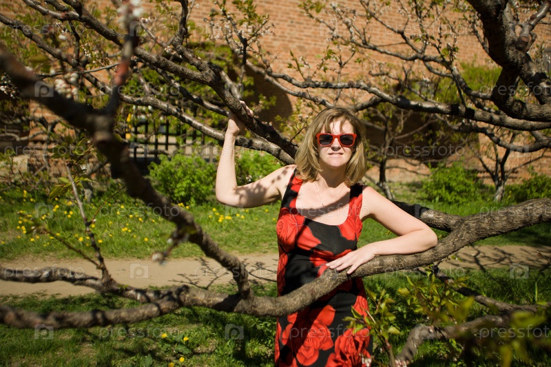 Взрослая беременная женщина в парке
