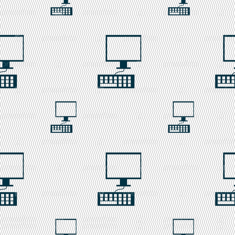Монитор компьютера и клавиатуры значок. Бесшовный фон с геометрической текстурой. Вектор