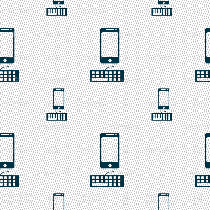 Компьютерная клавиатура и значок смартфона. Бесшовный фон с геометрической текстурой. Вектор