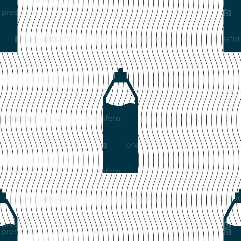 Пластиковая бутылка с напитком значок знак. Бесшовный фон с геометрической текстурой. Вектор