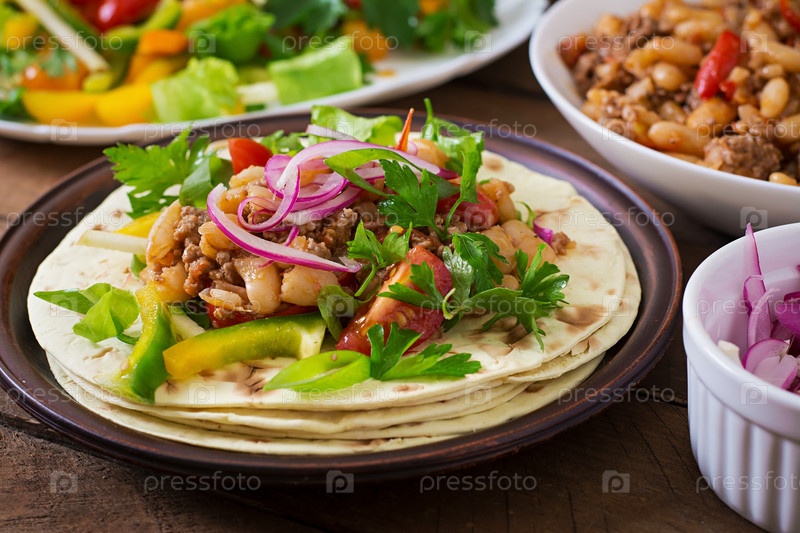 Мексиканские Тортильи с овощами и мясом