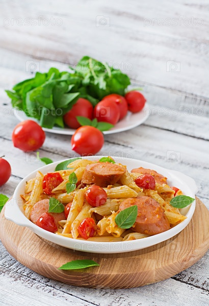 Макароны с сардельками и овощами