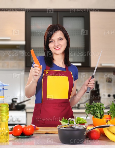 Молодая женщина готовит еду