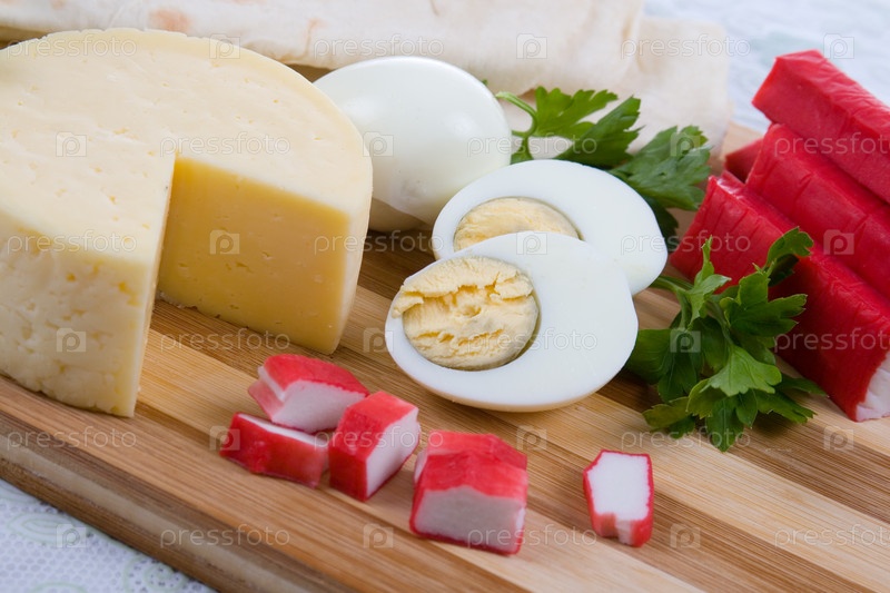 Ингредиенты для салата на разделочной доске