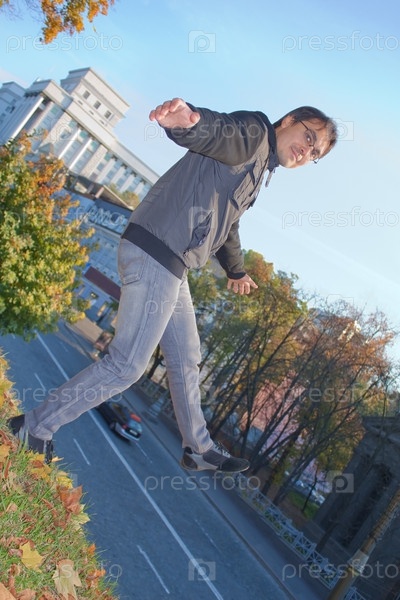 Молодой мужчина с поднятой ногой
