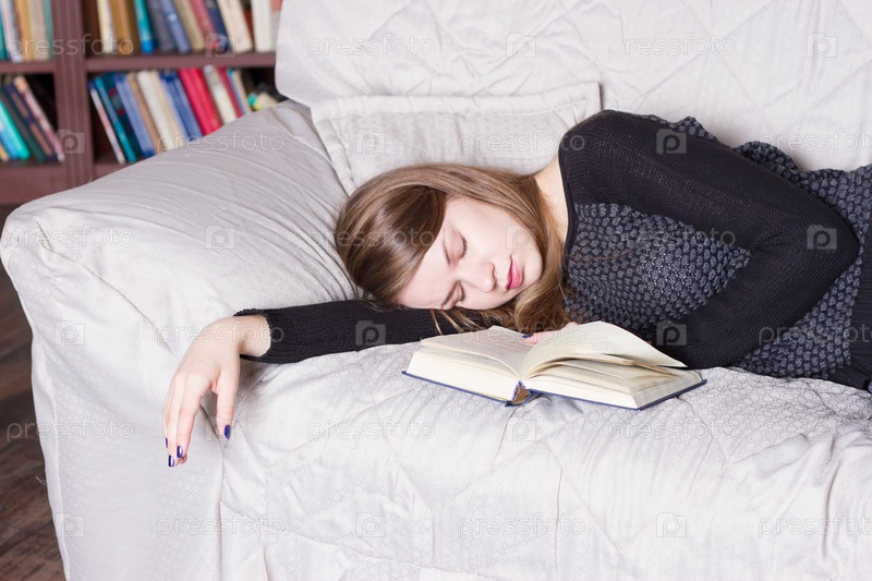 Милая девочка, спать держа книгу лежа