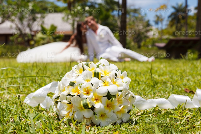 Свадебный букет Франгипани и Молодая пара