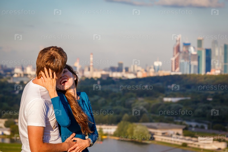 Молодая пара на фоне голубого неба
