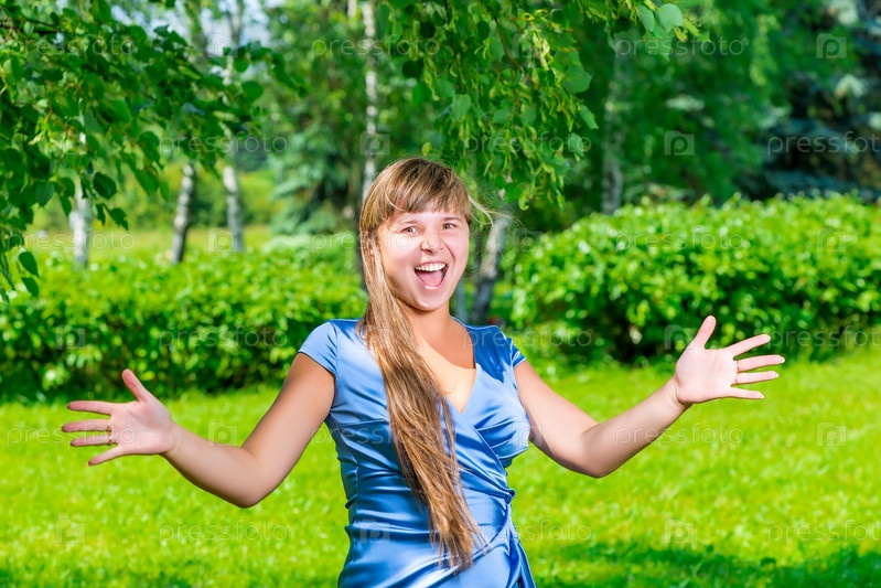 Веселая девушка в парке