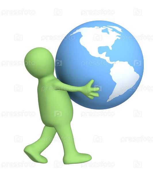 Стилизованный человек, несущий Землю в руках