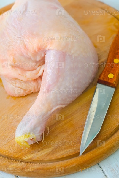 Сырая курица и нож на разделочной доске