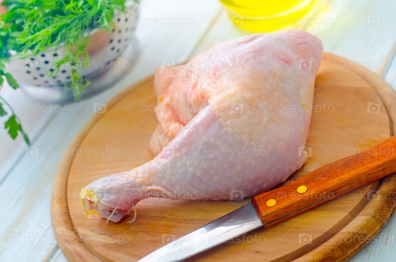 Сырая курица и нож на разделочной доске