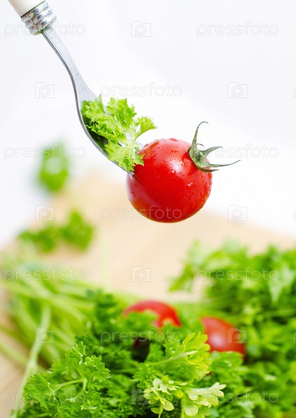 Свежие помидоры черри и зеленый салат