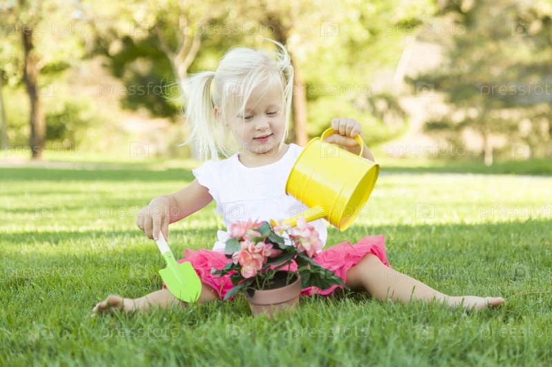 Маленькая девочка и цветочный горшок