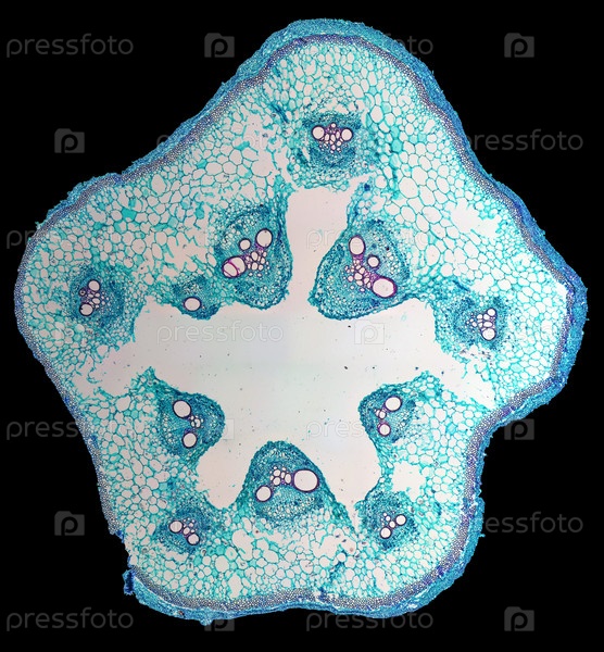 Микрофотография сквозь Микроскоп поперечное сечение стебля тыква