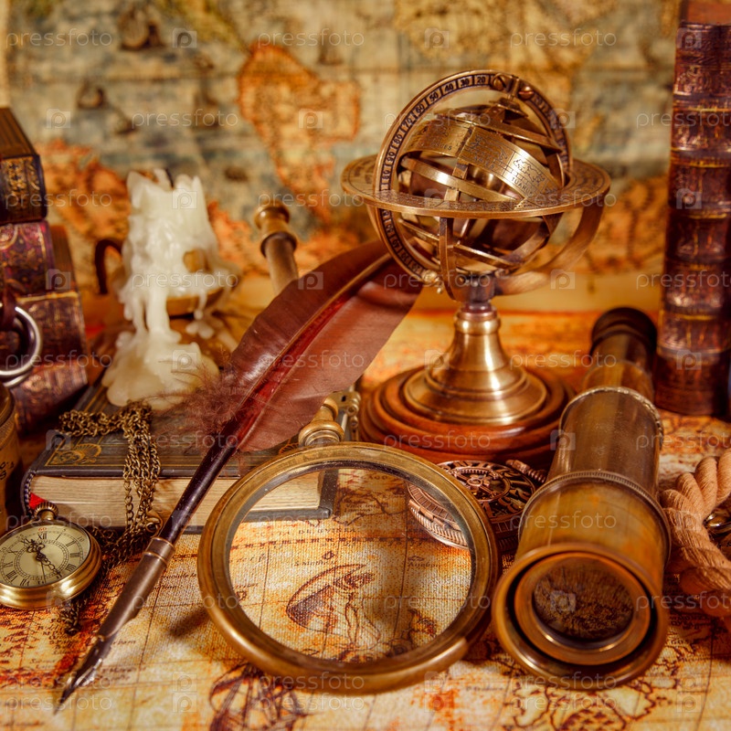 Винтажные увеличительное стекло лежит на карте античного мира