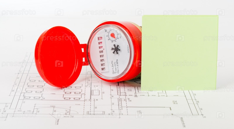 Счетчик воды с наклейкой на проекте