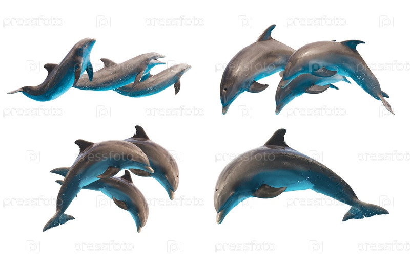 Прыжки дельфинов на белом
