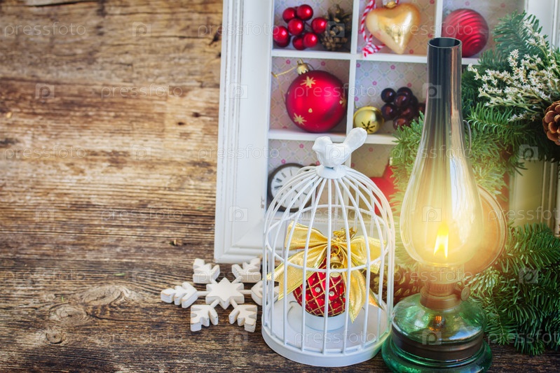 Старинный фонарь с Рождественский венок