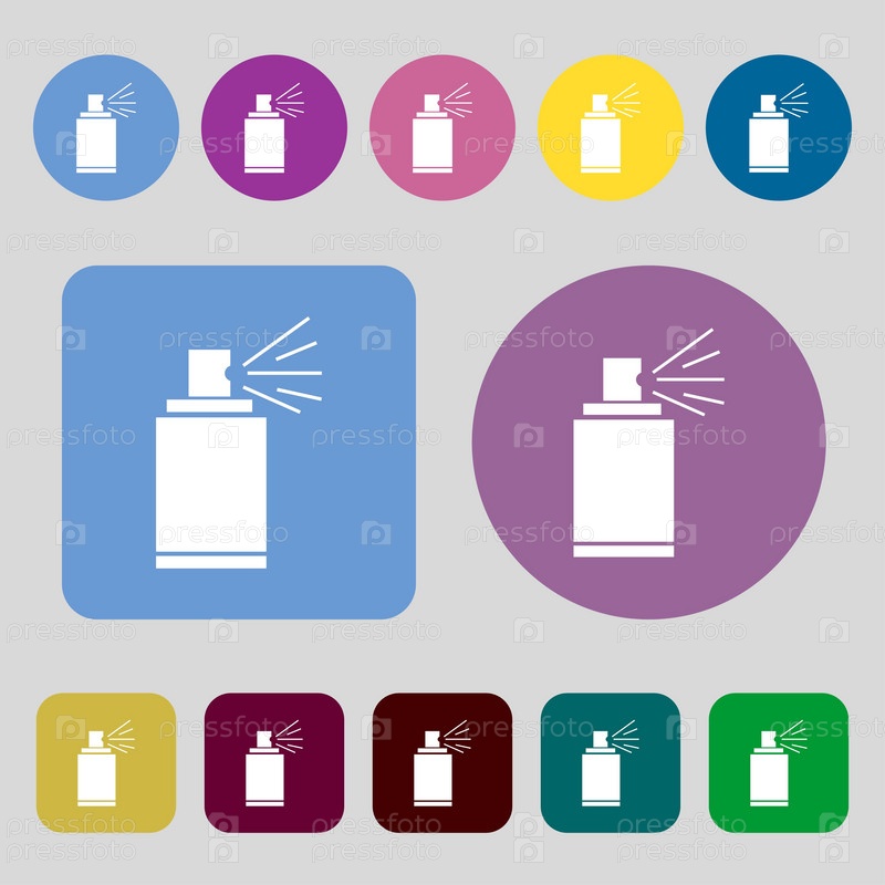 Граффити спрей может подписать значок. Аэрозольные краски символ. 12 цветных кнопок. Плоский дизайн. Вектор