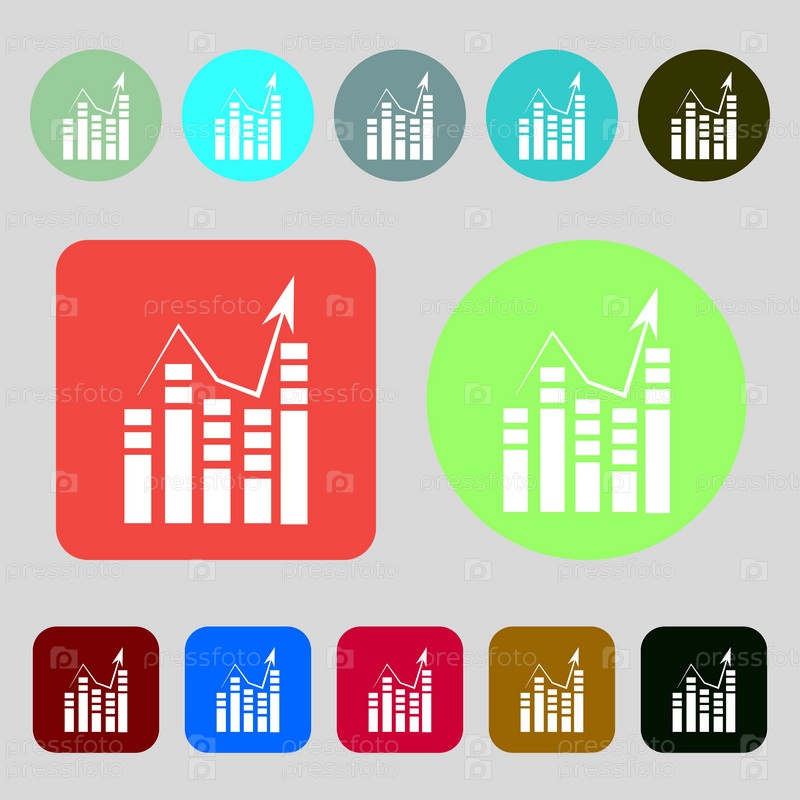 Значок текстового файла. Добавьте документ знаком диаграммы. Символ отчетности. 12 цветных кнопок. Плоский дизайн. Вектор