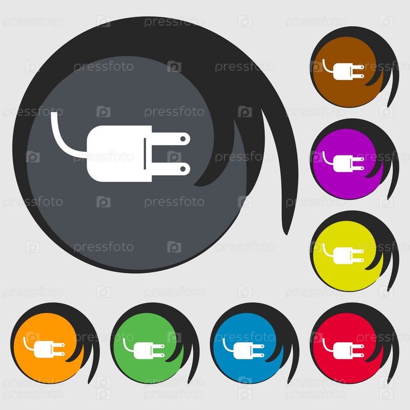 Электрическая вилка знак значок. Символ мощность энергии. Символы на восьми цветных кнопок. Вектор