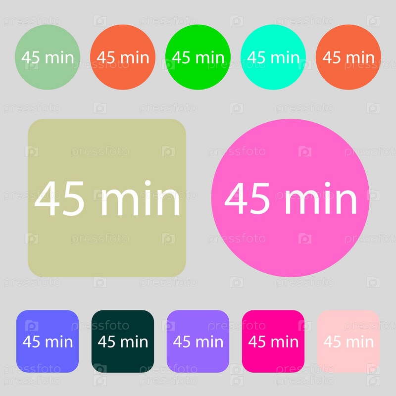 Сорок пять минут знак значок. 12 цветных кнопок. Плоский дизайн. Вектор