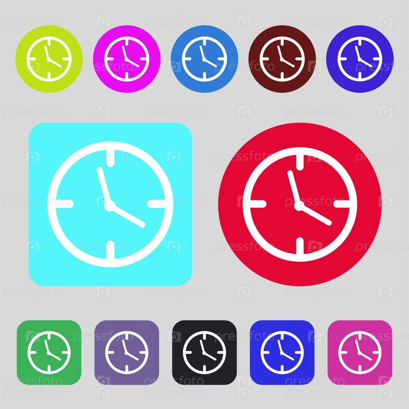 Значок часов время знак. Механические часы символ. 12 цветных кнопок. Плоский дизайн. Вектор