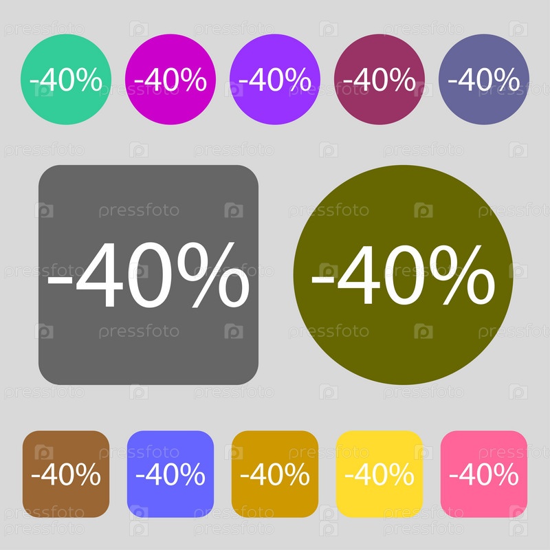 40% скидка знак значок. Продажа символ. Специальное предложение метка. 12 цветных кнопок. Плоский дизайн. Вектор